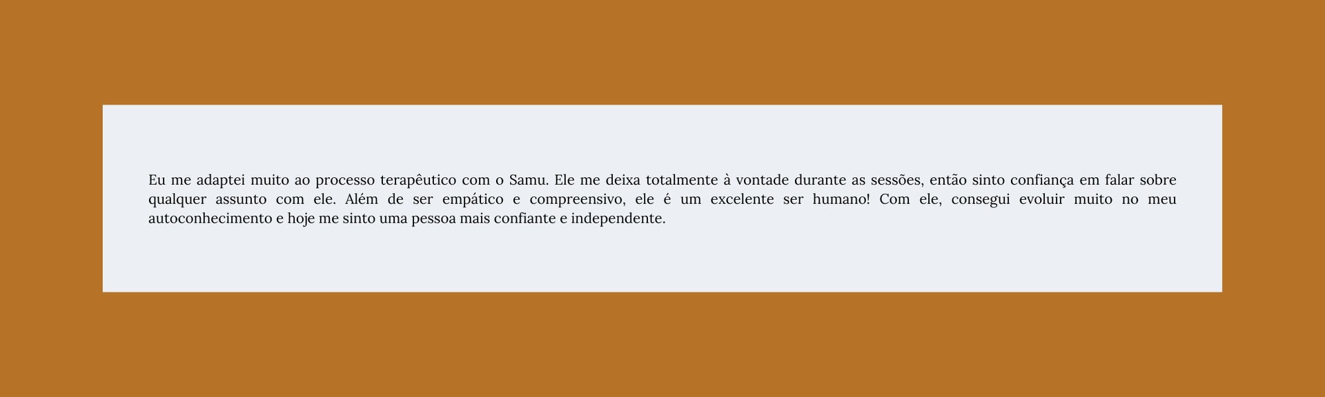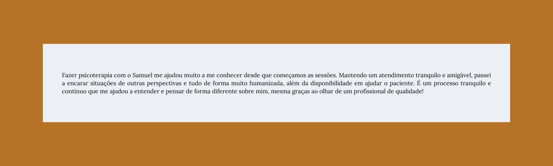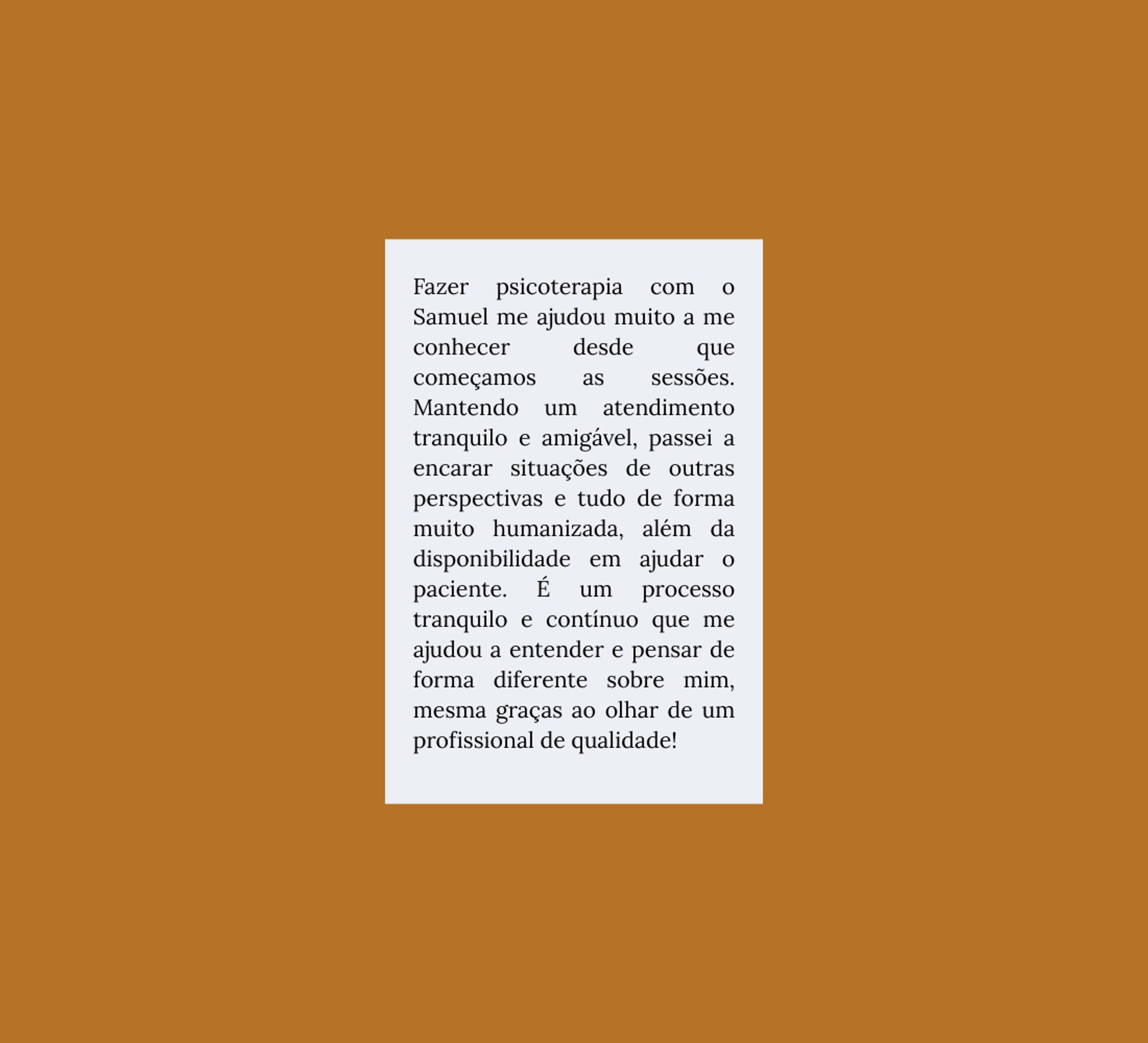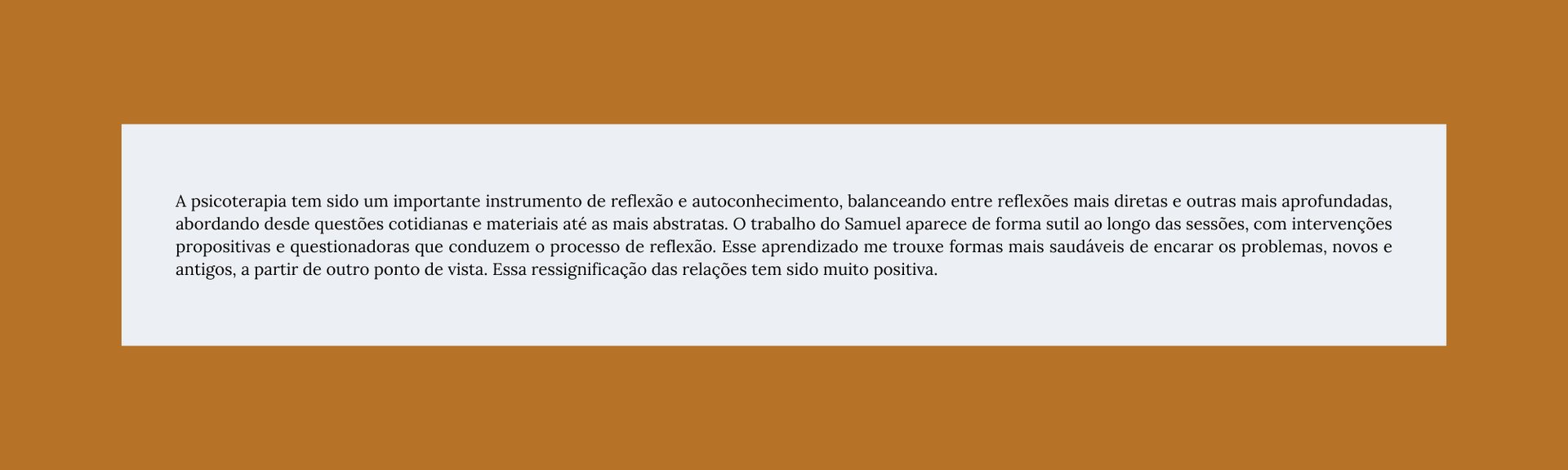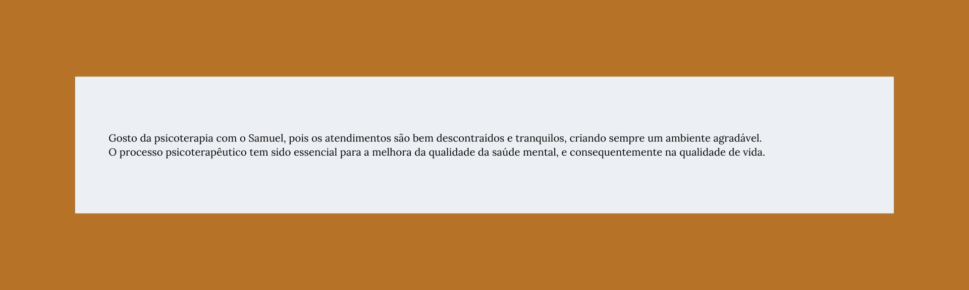 Em minha psicoterapia, as dores e questões que você trouxer serão escutadas, validadas, pensadas e discutidas de um modo que faça sentido para você.
