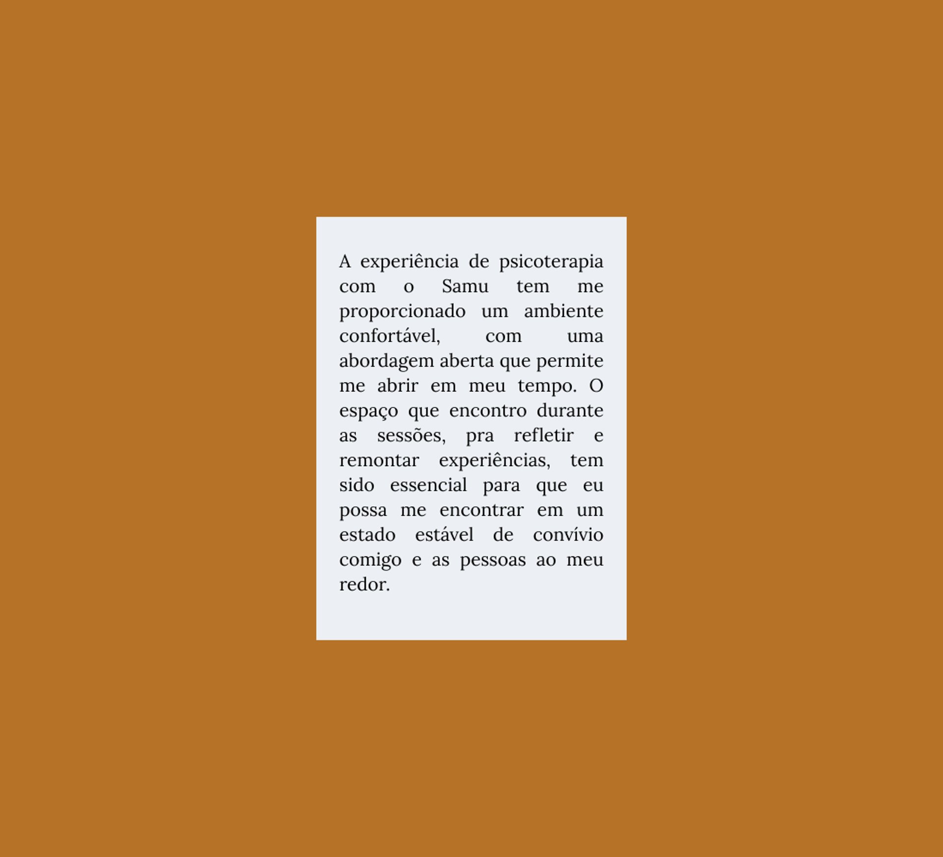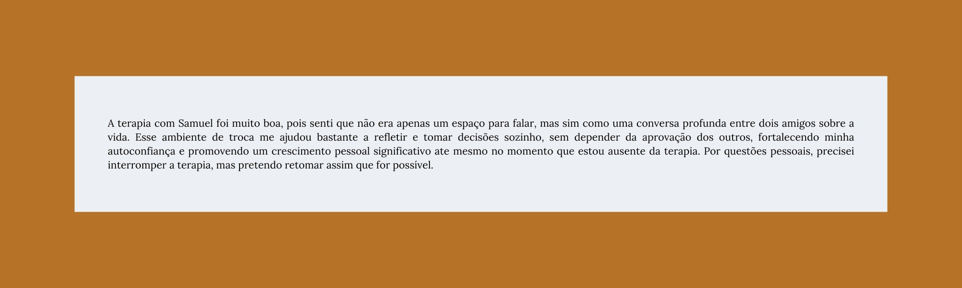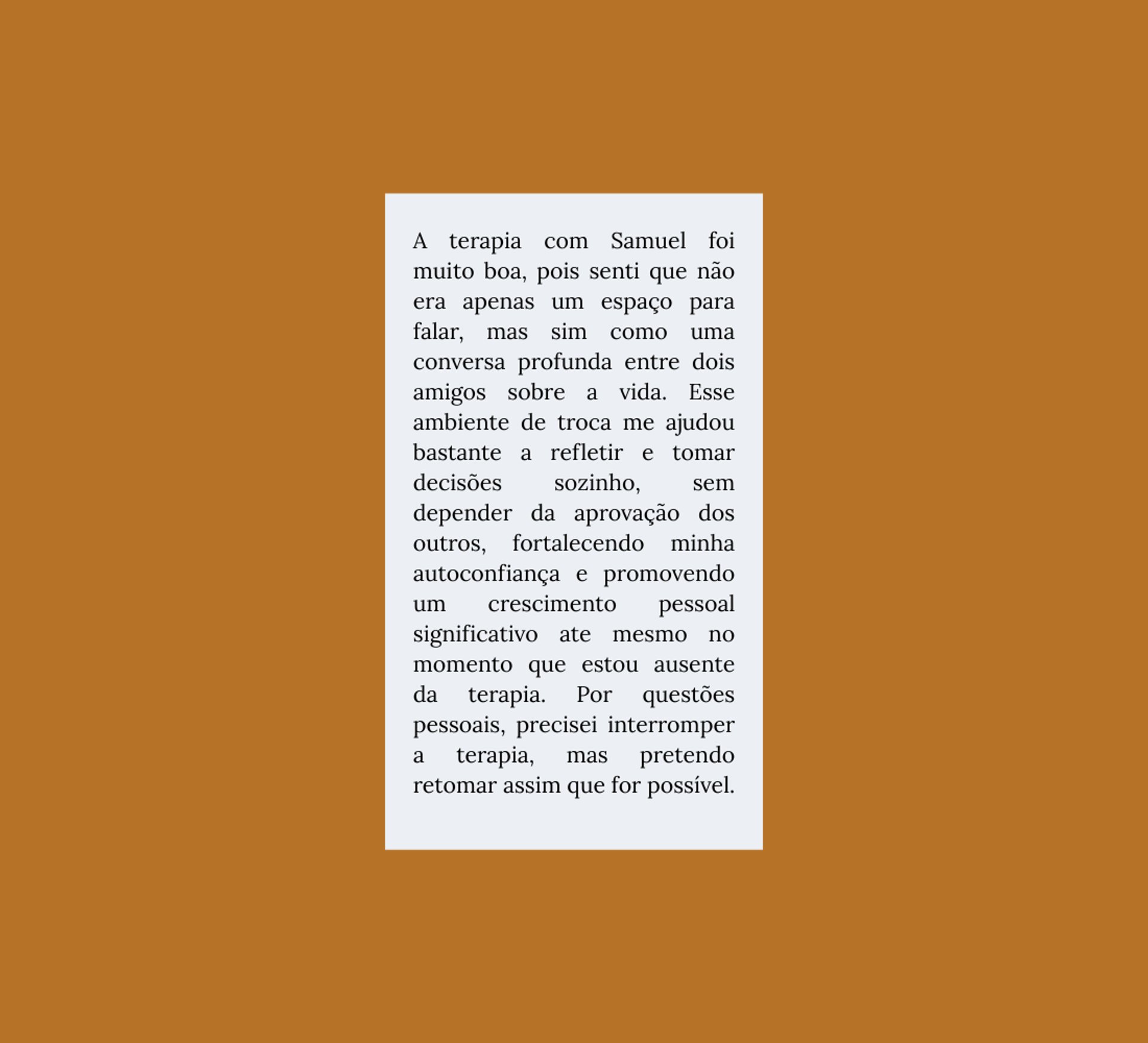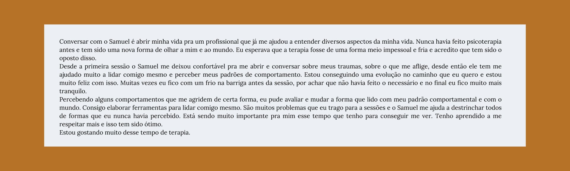 Observação: Os depoimentos são de pessoas reais que tiveram suas identidades preservadas de acordo com as normativas éticas e profissional.